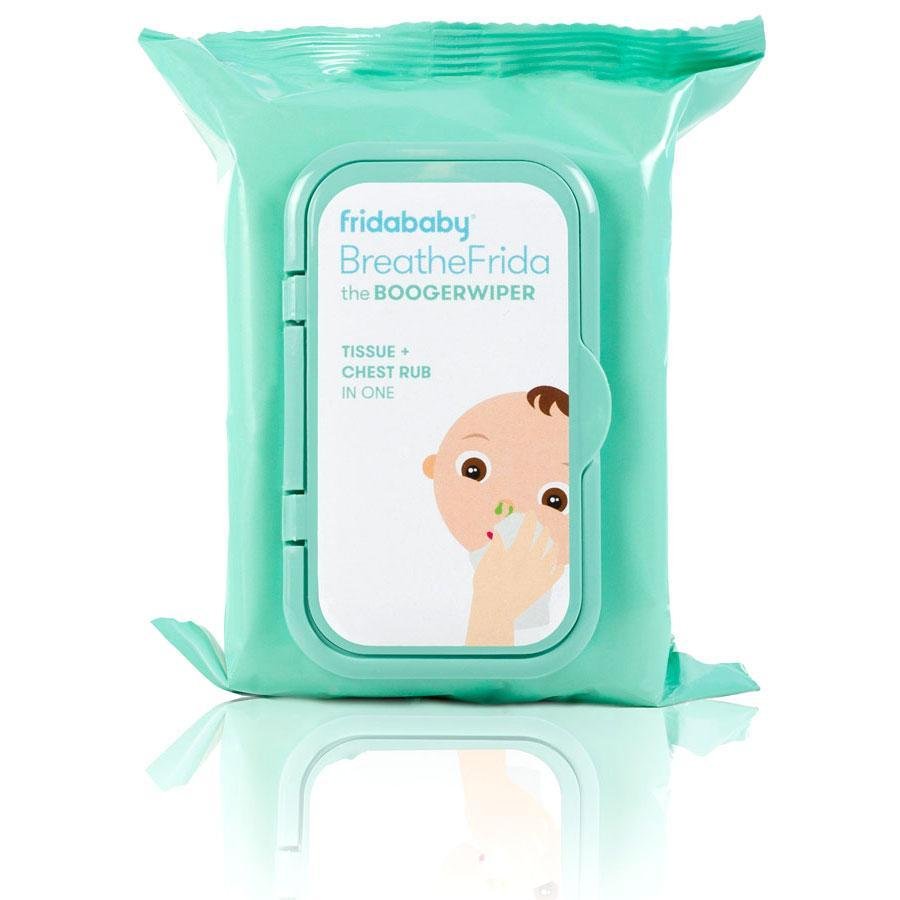 A chest balm meets tissue mashup, BoogerWiper soothes snore sniffers at home and on-the-go with all the benefits of a chest balm in a fuss-free wipe form. Chamomile, aloe + vitamin B provide cooling relief to tender noses, and all-natural menthol + eucalyptus leave baby feeling refreshed from chest to toes.