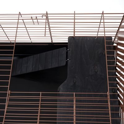 This Modern Living Industrial Small Pet Cage has been created with the help of veterinarians to offer the ideal cage height and grille spacing to provide safety and comfort for your small pet. A second level can be reached through a connecting ramp to a wooden platform, offering your small pet a place to play, relax and support its wellbeing. The cage offers a comfortable, functional space to live, meeting the needs of rabbits and other small pets to help enrich its home.